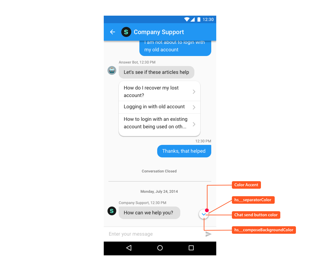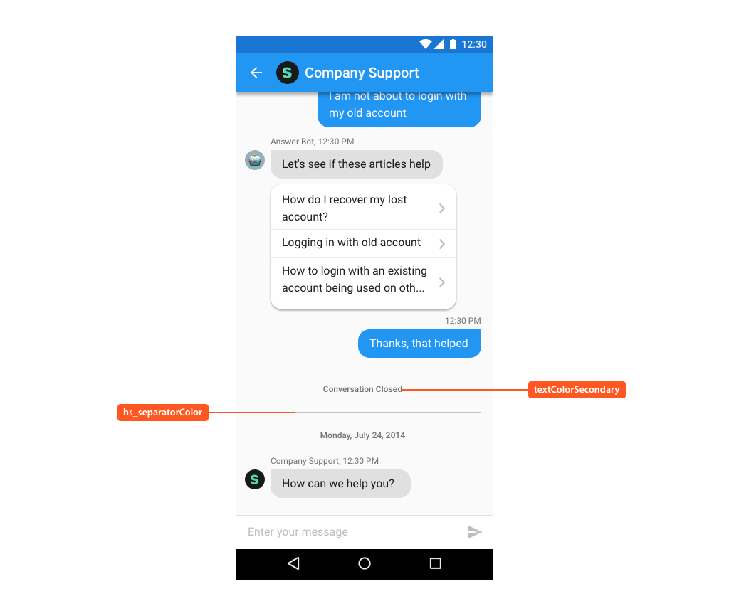 You can give the Material look and feel of your app to Helpshift SDK by customizing very few attributes as follows: