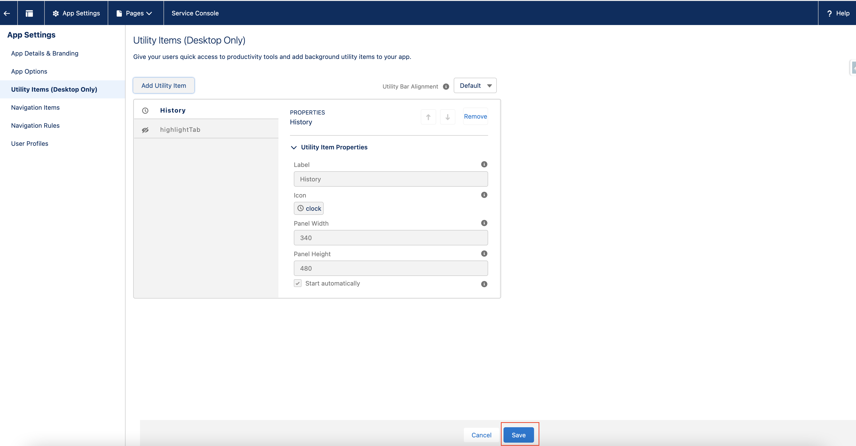 - Click on Add Utility Item and search for highlightTab :
